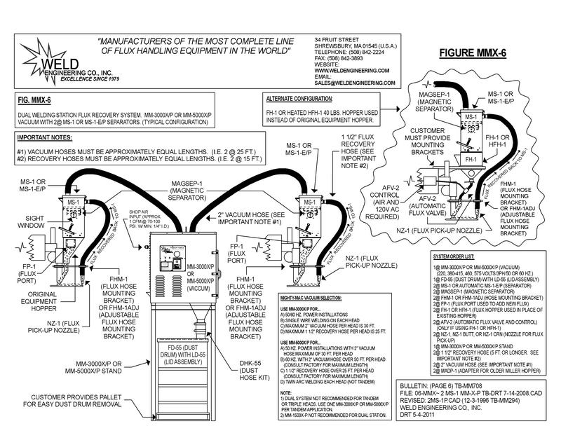MMX-5 | Dual welding station flux recovery system. MM-3000X or MM-5000X vacuum with 2 MS-1 or MS-1-E/P separators. | Print Diagram |
