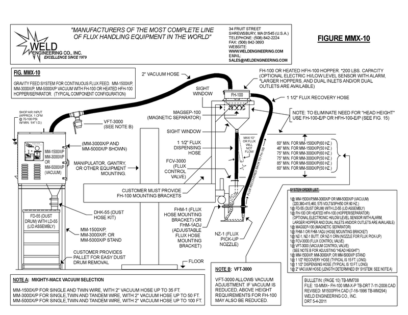 MMX-10 | Gravity feed system for continuous flux feed. MM-1500X/P, MM-3000X/P, MM-5000X/P vacuum with FH-100 or heated HFH-100 hopper/separator. | Print Diagram |