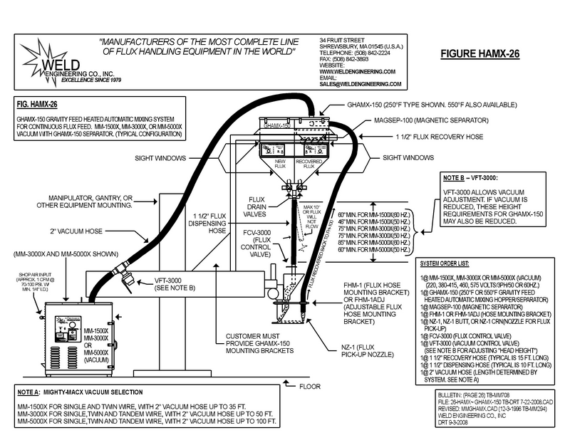 HAMX-26 | GHAMX-150 gravity feed heated automatic mixing system for continuous flux feed. MM-1500X, MM-3000X, or MM-5000X vacuum with GHAMX-150 separator. | Print Diagram |
